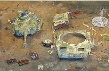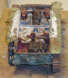 Vestiges of Zimmerit can be found. I assume the rest has burnt