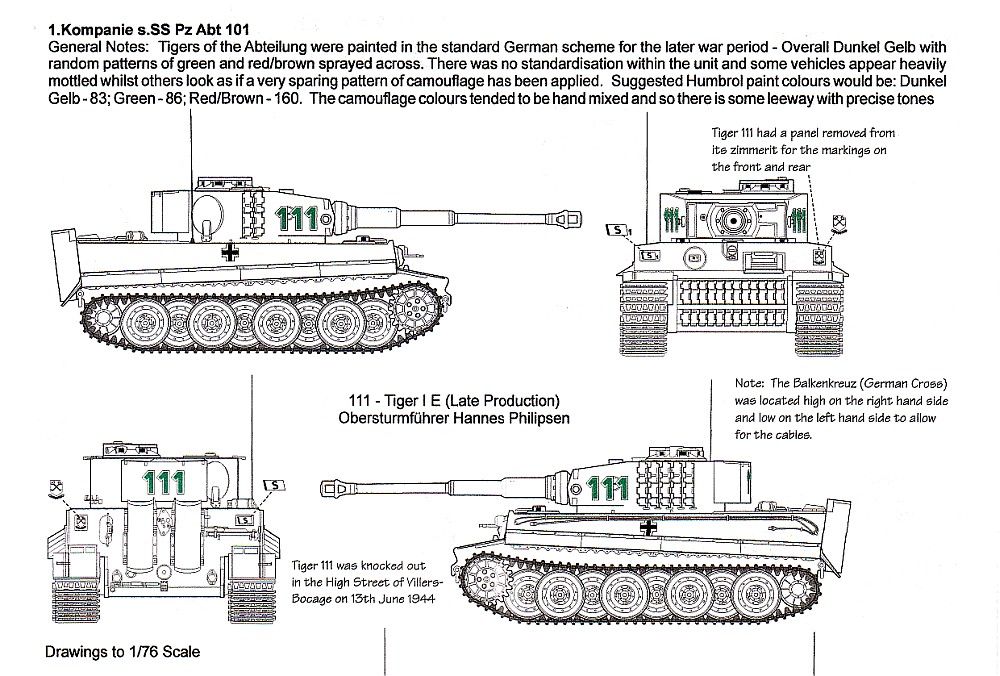 Included is an extensive guide on what markings go where, and a legend mapping out the details for each Tiger, things such as gun sight type, main gun