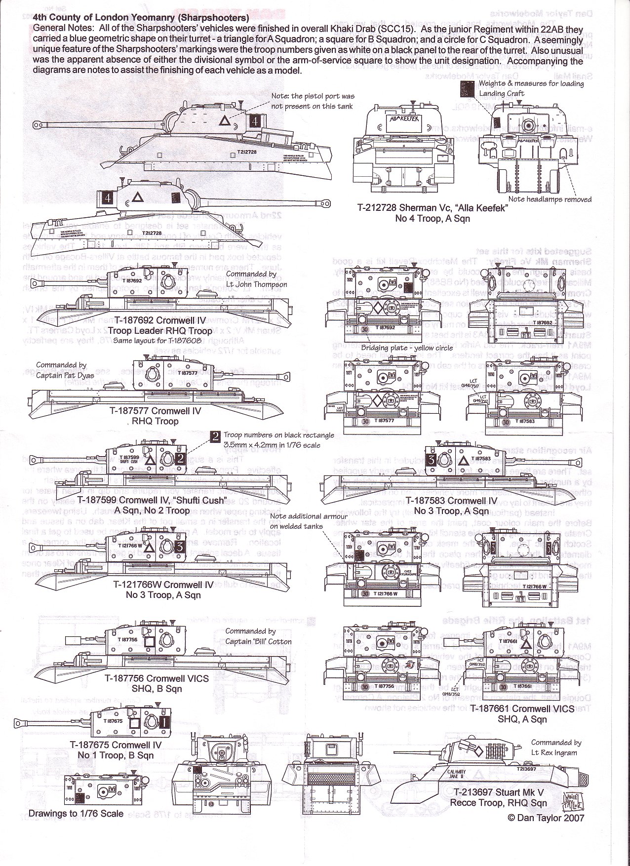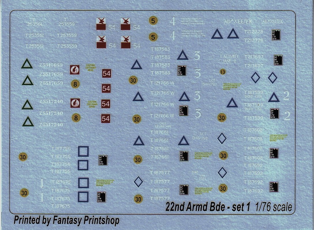 from the paper. On some of the Cromwell IVs, the white troop numbers have black backing squares, which are not on the decal sheet, so it is up to the modeller to make these.