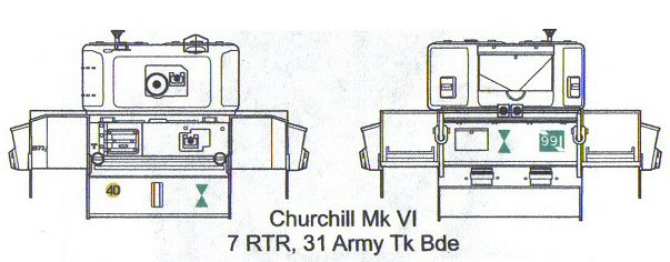 | The set is made for 1/76 scale, anyway the difference to the 1/72 is so little (about the 5%) that they are perfectly suitable for our scale. Conclusions Well, despite the absence of other markings, the set is very useful and I like it. On the other hand I like the Churchill tank, but I don’t believe I will make 33 of them. Perhaps a bit of space could have been used for some other tactical markings, WD numbers and names, renouncing to some Brigade badges and AoS. Anyway as already told, the original photos mostly show us the tank made "anonymous" by dust, dirt and other items. Highly