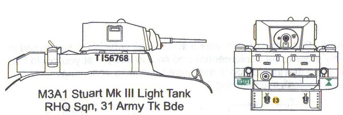 Anyway, as far as I’ve seen about the 31st AB and the 34th AB tactical markings, they usually carried them on the turret sides, on the rear bin and on the port side of the turret front, filled in black. Within