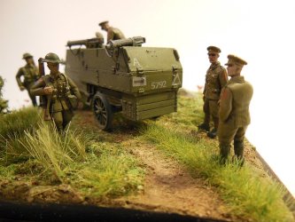 The figures are from the excellent W∧D models range. They are a combination of WD9 - British Infantry (walking), WD19 - British Driver/Passenger, WD2 - Light Railway Crew, and WD4 - Gun Crew.