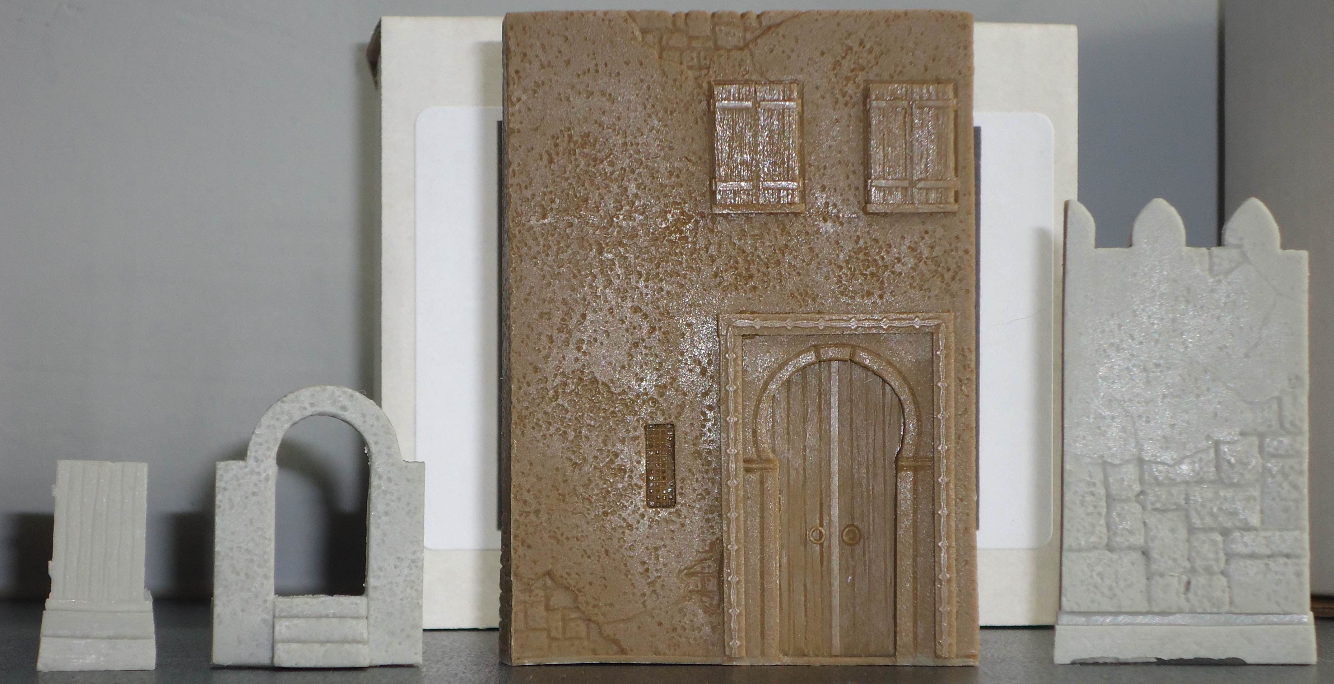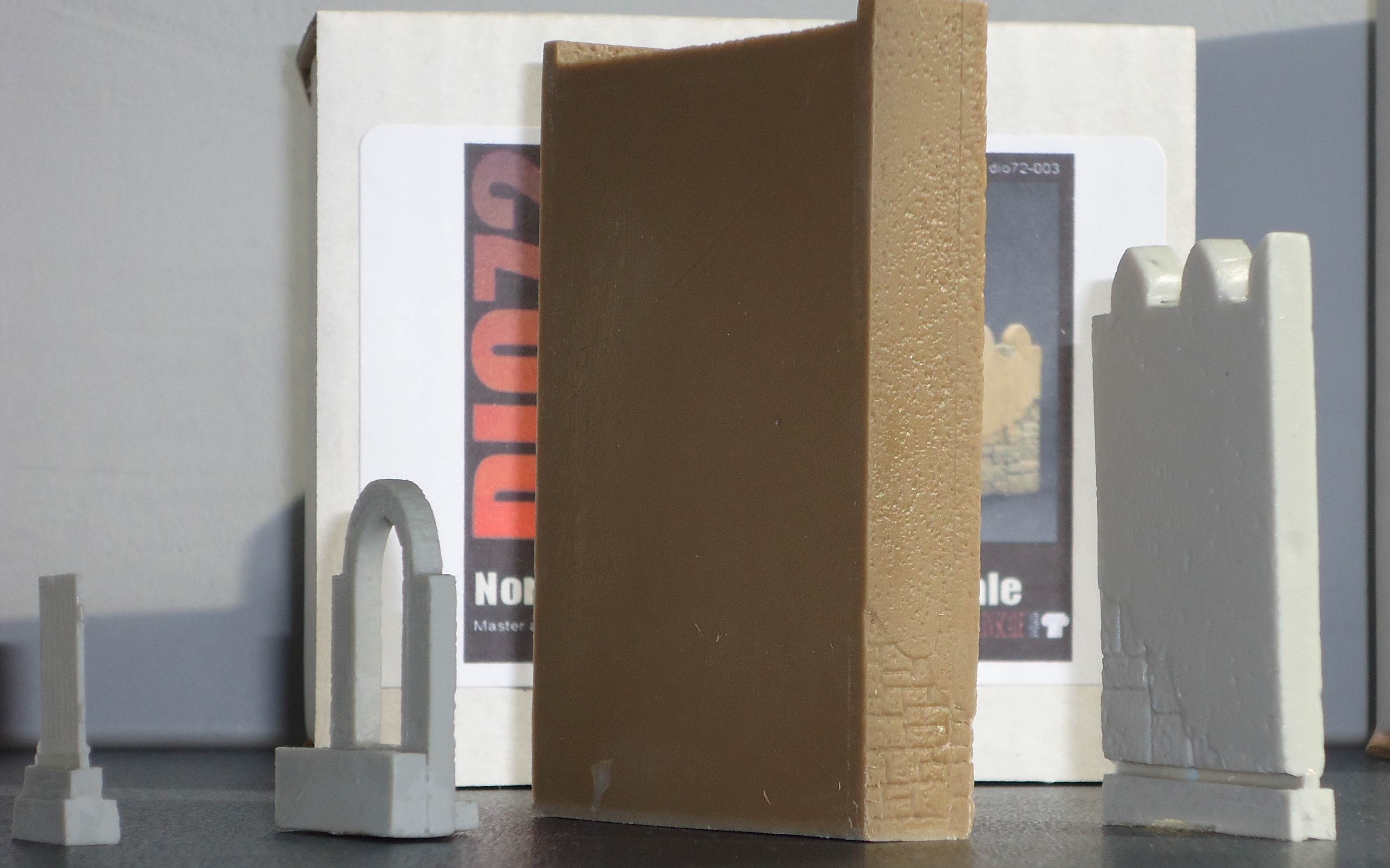 of World War II. The set contains 4 pieces, three cast in grey and one in brown resin. It seems Reality in Scale is using resin casting technology that is state of the art, as - even though the brown part is a massive block - no warping is present on the parts, not a single air bubble was found and detail is very crisp. Apart from removing three casting blocks on the grey parts, there will be no clean-up required whatsoever, meaning that, after priming, painting can start straightaway. While the grey parts have detail on both sides, the brown part is solid, with a flat back. In our scale, diorama items that have detail on both sides are rather rare, with companies using open molds. Most of the time this results in a visible back-side of the walls, where the texture is rough and devoid of detail. Basically, this mean that you only get half a building and that you have to scratch the other side yourself. Dio72 has opted for another formula, where the building is solid, with a clean backside, making it ideal as a backdrop of a scene, without actually integrating the interior of the building in the scene. All in all, a very nice set.