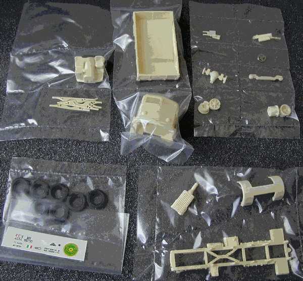 As any resin kit, some cleaning of the parts is needed, even if this particular item has few . Some care in removing small parts from their sprues is also needed. In my specimen there were no air bubbles, but some warping of parts is visible on most parts of the chassis and elements of the cargo compartment.