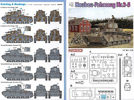 With box art work by Ron Volstad, the Neubau-Fahrzeug NR. 3-5 (kit no. 7438) comes in a larger than normal box and it is taped on all four sides and