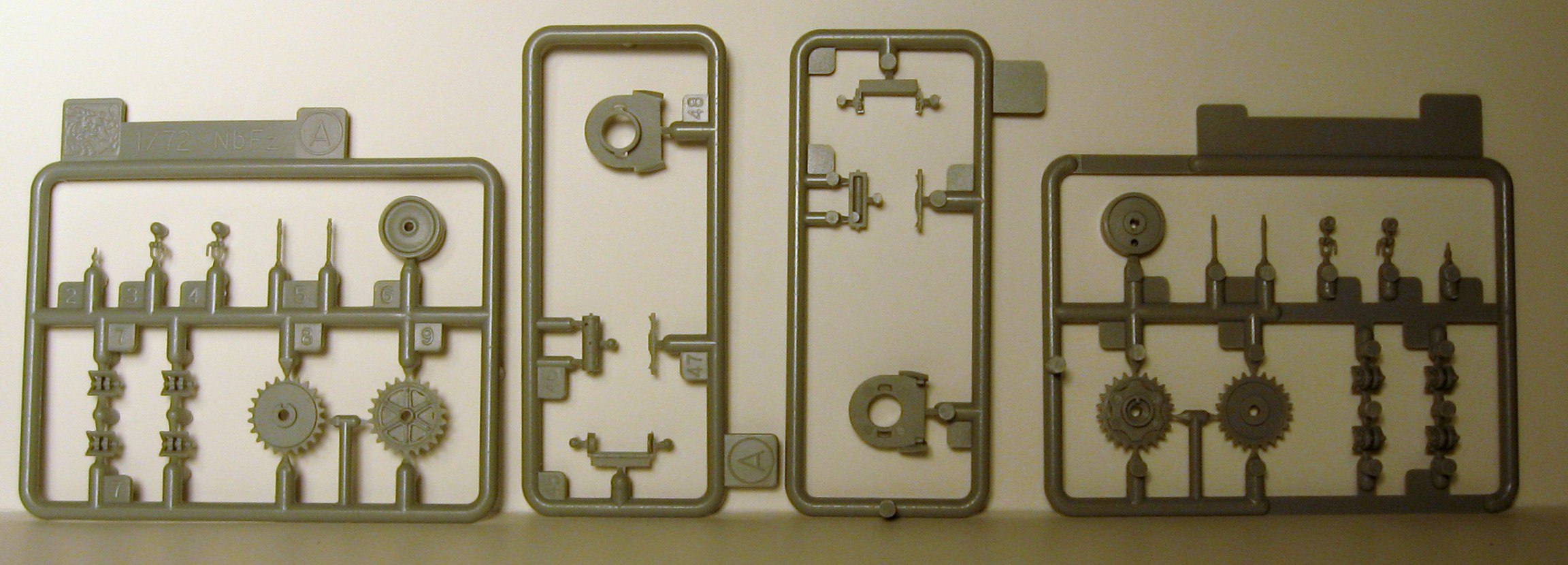 Moving on to the road wheels, we see they are molded in one piece with a separate single road wheel that goes under the front idle wheel.