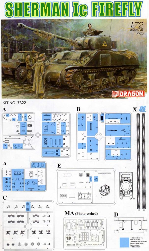 Sherman IC Firefly: Most of the parts of sprue a, A and