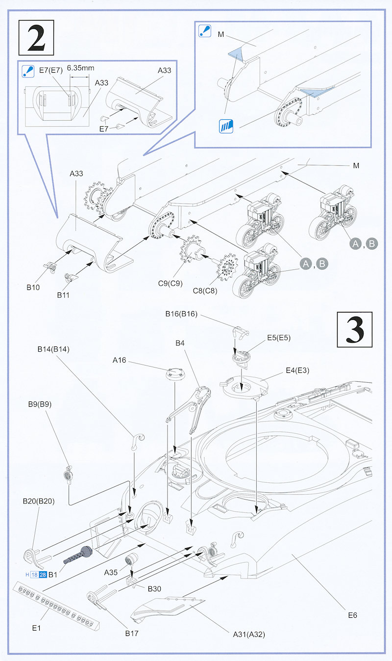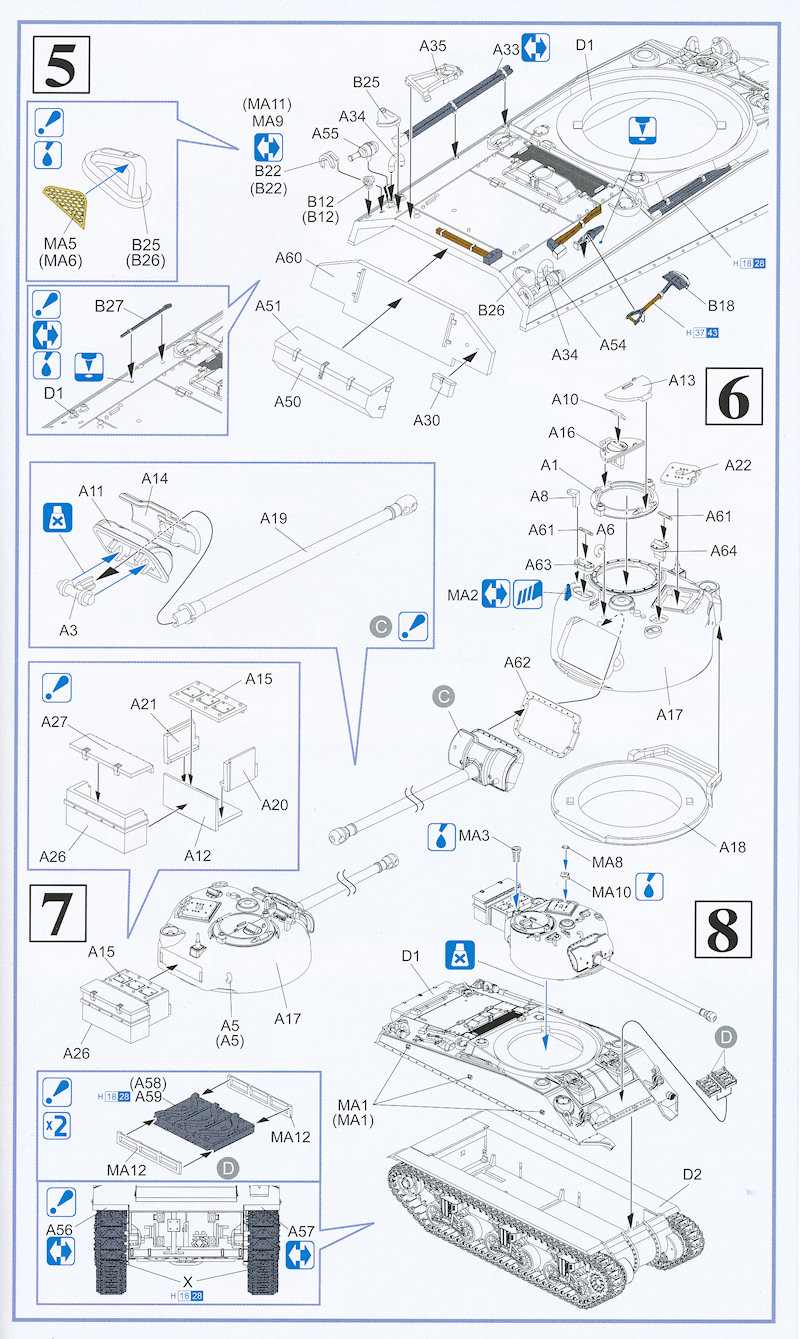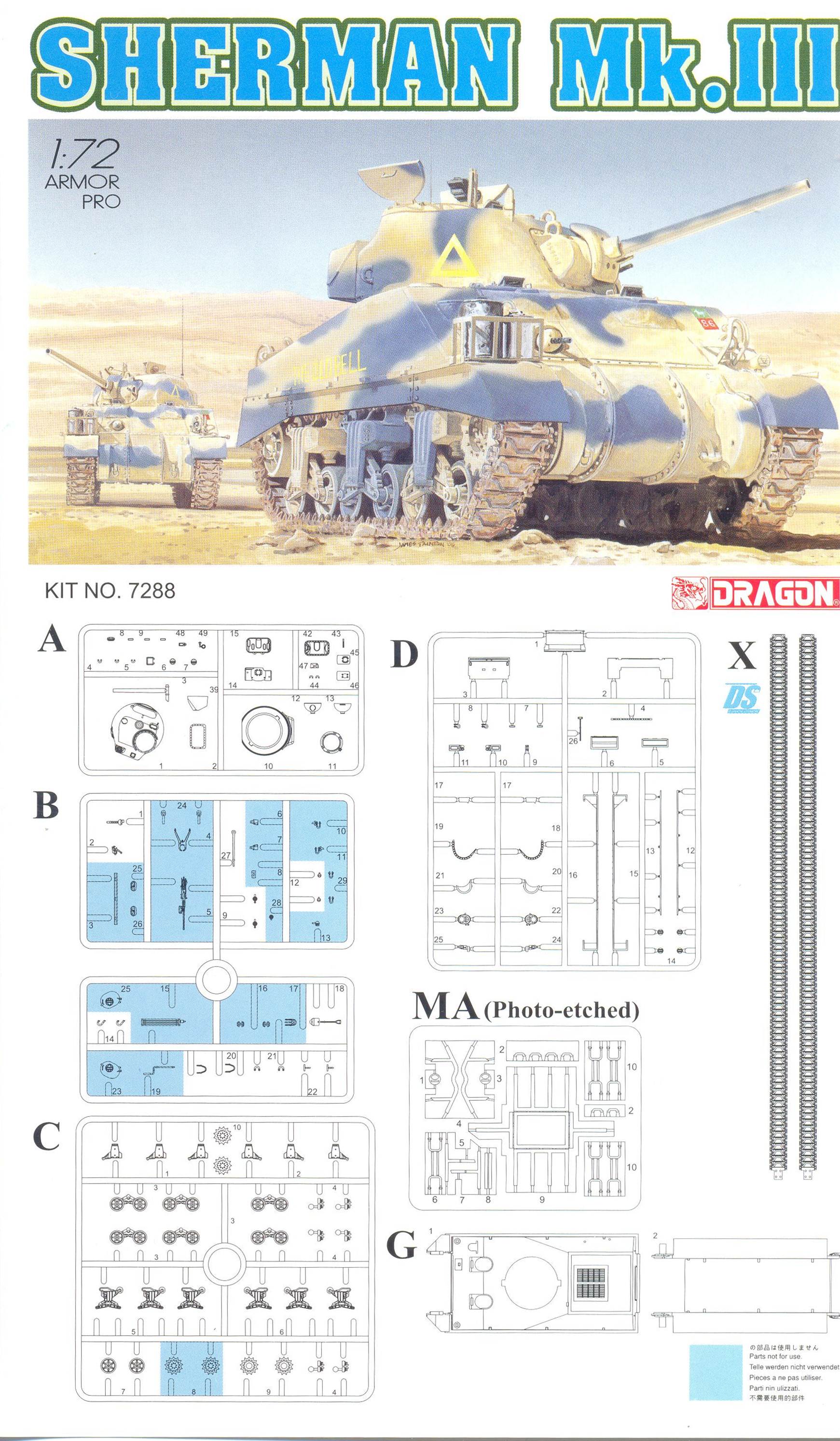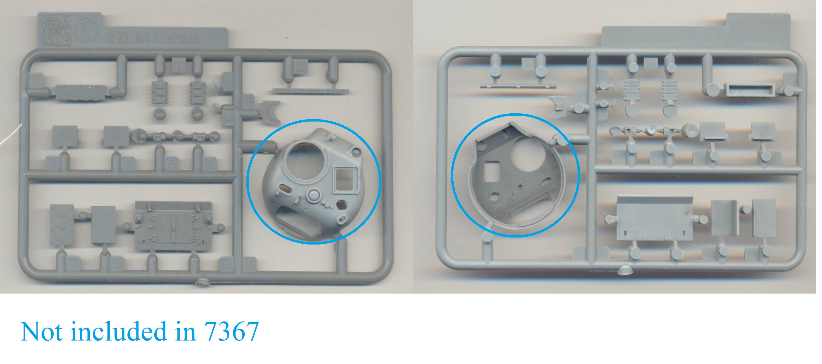 Sherman MkIII: Most of the parts of sprue B are blued-out,