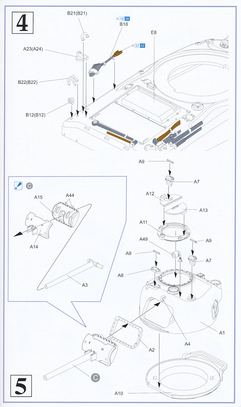of the parts of sprue A, blue A, B and E are blued-out, amongst