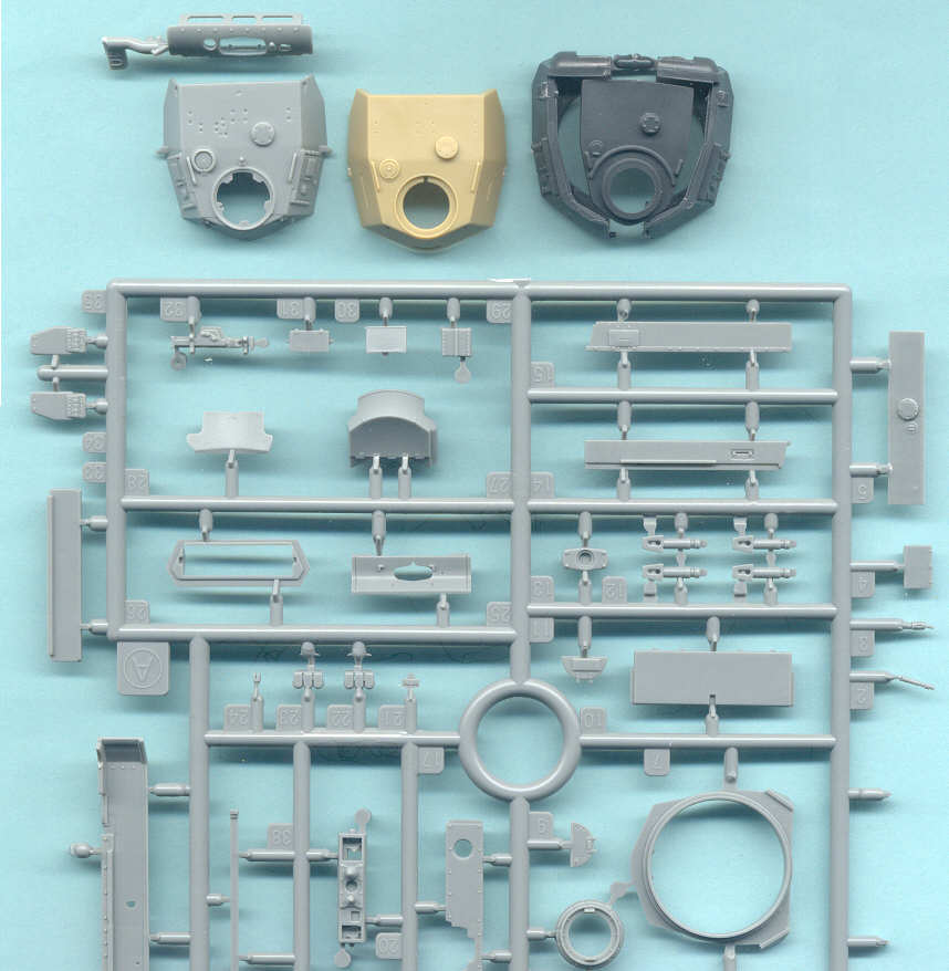Here, on sprue-A ,we find a superbly rendered turret bin at upper