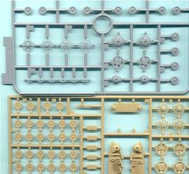 There are about 89 light-gray injection molded parts, 6 etched brass