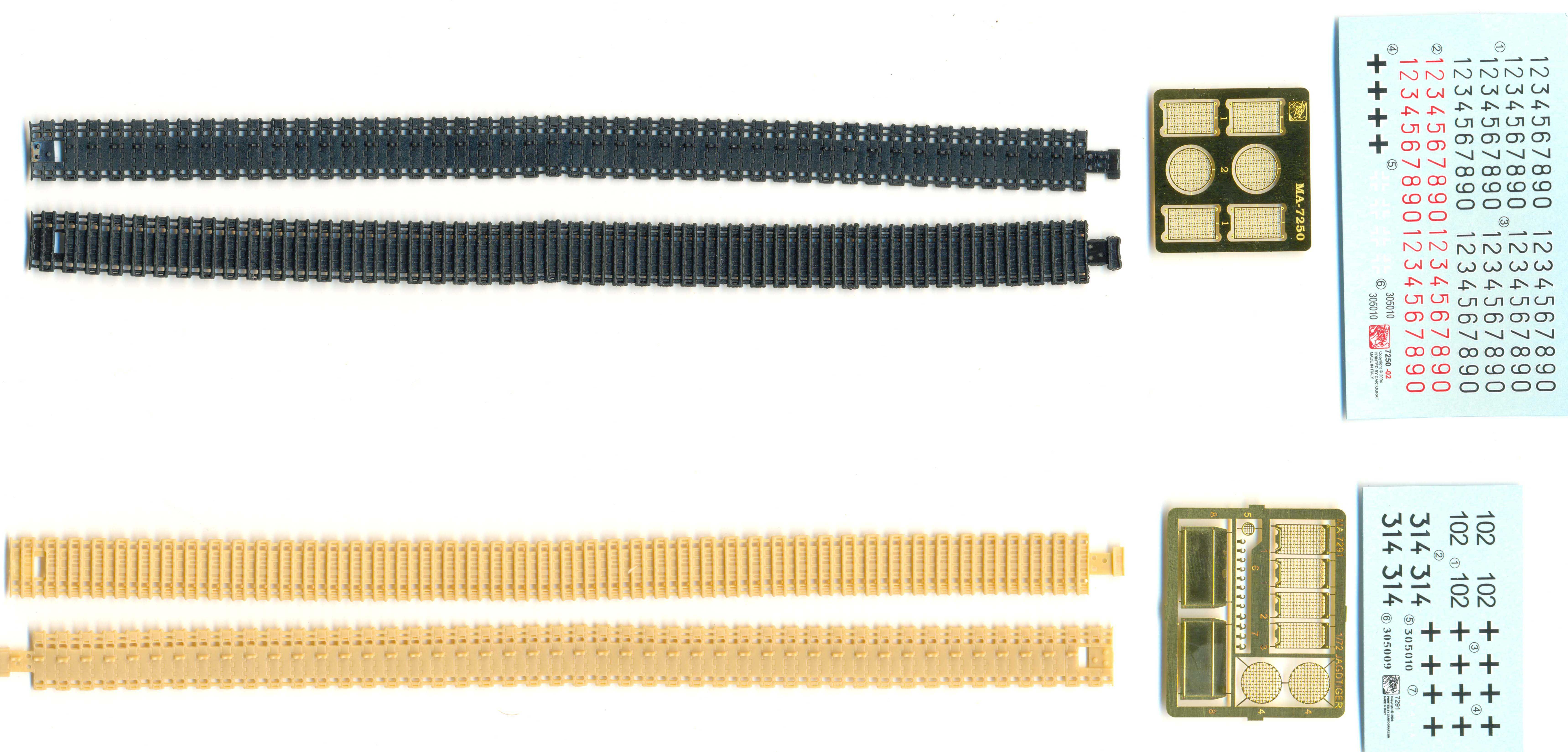 You get more and finer PE parts in 7291, not only for the engine deck but also optional shrouds for the exhausts. The tracks seem identical except for