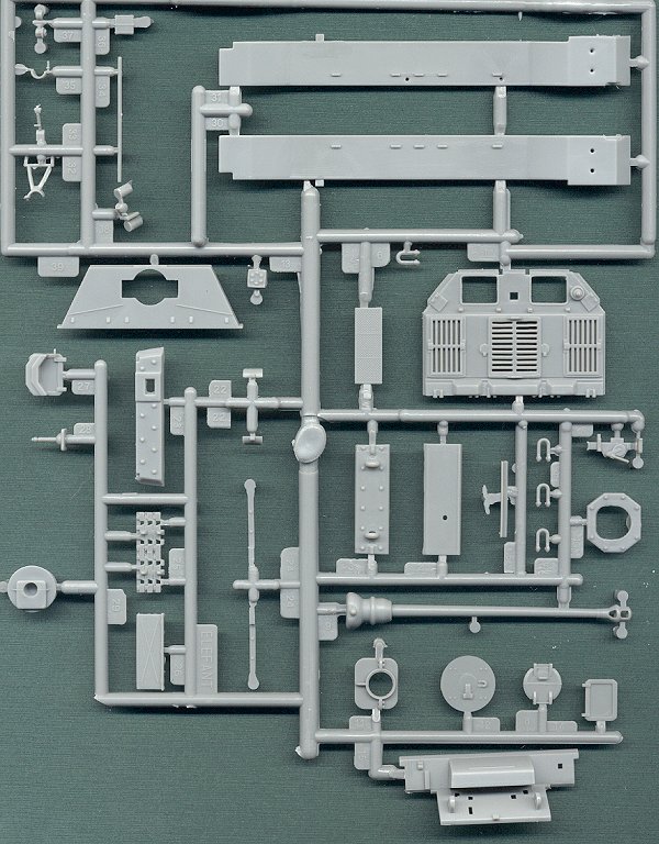 The hull is molded as a single piece, and considering the superb detail it exhibits, it's obvious that a four (or more)-part mold was used to make it. The wheel suspension springs look amazing. Even the sprue of other kit parts was made with a multi-part mold, which allows for detail on the sides of some of the parts, not only the tops and bottoms (the tip of the gun barrel is even open, and does not need to be drilled).