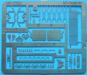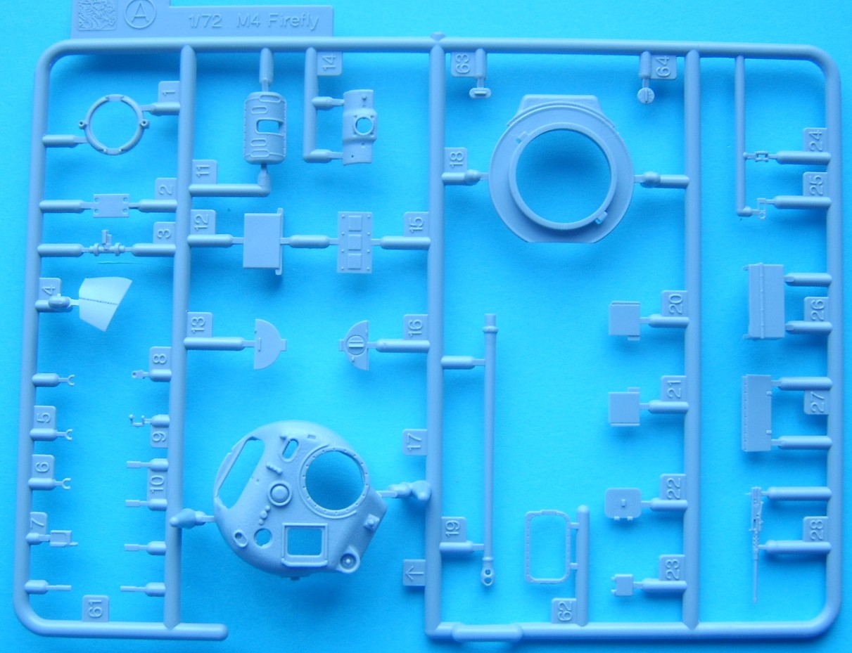 For me personally the most awaited of the Sherman vehicles, well any of the 17pdr versions would do and I am glad to say it was worth the wait. Unfortunately when I got it home I found a problem with one of the sprues and although Dragon have said that they would send a replacement part, I am still waiting, then again to be fair it has been Christmas so the post always takes longer, but without the replacements I can't finish the vehicle. The kit uses the M4A4 hull which is longer than the standard M4 hull and it is nicely replicated with the exception of the moulded on tools ( with the exception of the spade, which is the wrong type for a firefly) The other oddity is the sand shield attachment points have lugs instead of holes, I find it hard to confirm whether this is correct or not and I suspect that it isn't. There is enough PE refinement in the kit to make this into a super model although you will need very good eyesight for some of the pieces, I am sure that Dragon are trying to find out how small they can go !Also included but not used are two .50 cal Browning's although there are only firing handles for one. The kit consists of a new lengthened lower hull A new lengthened upper hull A side view showing the sand shield attachment points The turret with the square loaders hatch, it should be noted that some Canadian firefly's had the oval hatch as found on the M4A3 75mm turrets, the sprue also has the extra armour for the RHS of the turret but this was not fitted to all firefly's. The sprue for the bolted transmission housing and rear exhausts, added hull armour and large stowage bin, you can see how my example has been short shot in the injection process rendering certain parts useless. This is mainly a sprue of spares with only the light brackets ( if you don't wish to use the PE ones) lights and some of the lifting eyes being used. The break down of the suspension is the same as the other Sherman kits The correct steel cleat type tracks are included in the usual DS styrene. An extensive PE fret is included with the light brackets and periscope brackets, plus the manual sighting equipment for the turret as well as hatch latches and handles and the intake grill behind the turret. Decals are provided for 4 vehicles, 1 British, 1 Canadian, 1 or 2 captured German vehicles ? as one set is for an unidentified vehicle. With the exception of the moulded on tools and the DS tracks this is probably the ultimate firefly in this scale and plastic so far, with the inclusion of the PE it makes for a highly detailed model. I recommend this kit for all firefly fan and Sherman fans for that matter. References M4 Sherman Vol II Militaria The Universal Tank, British Armour in the Second World War part 2 by David Fletcher |