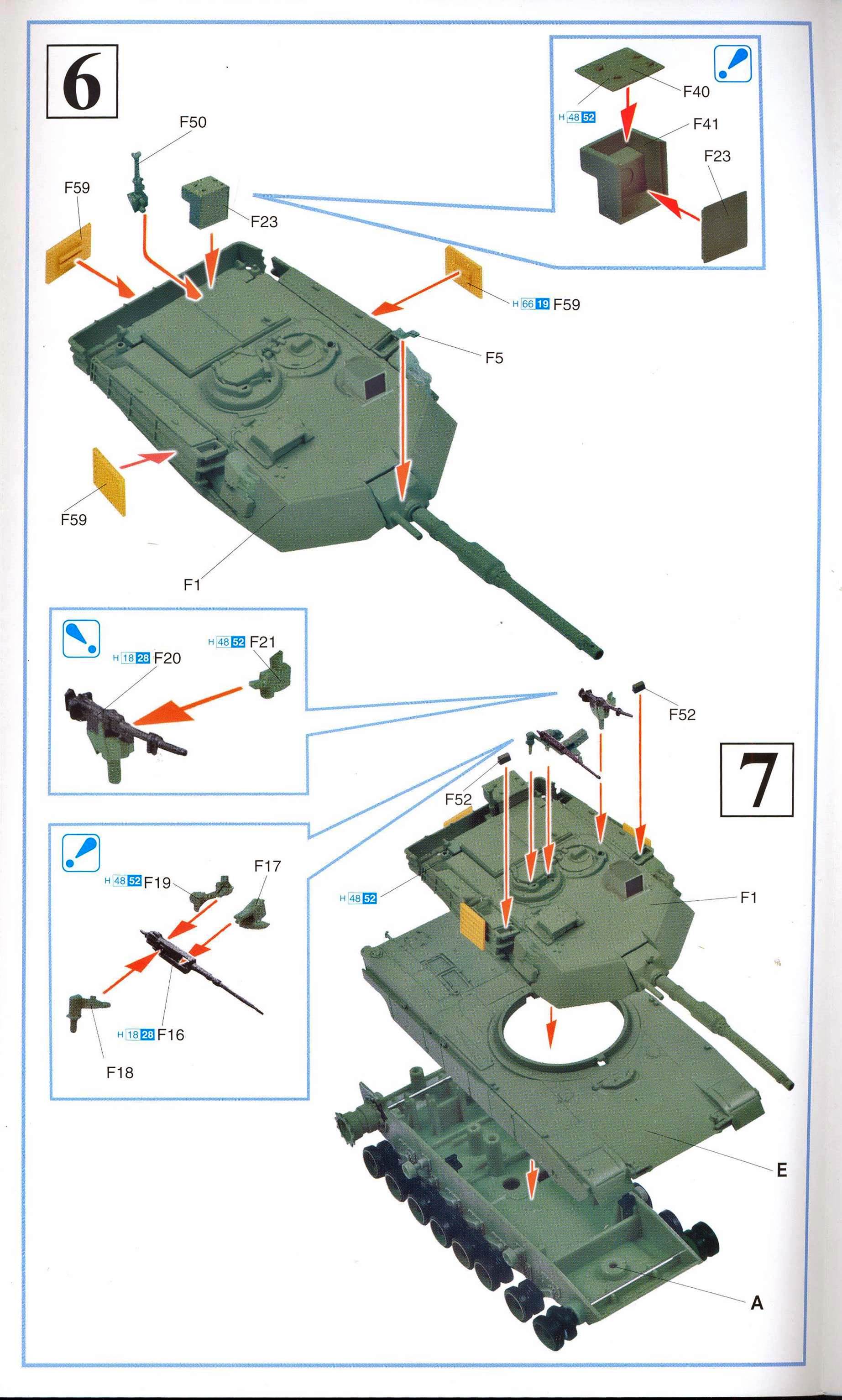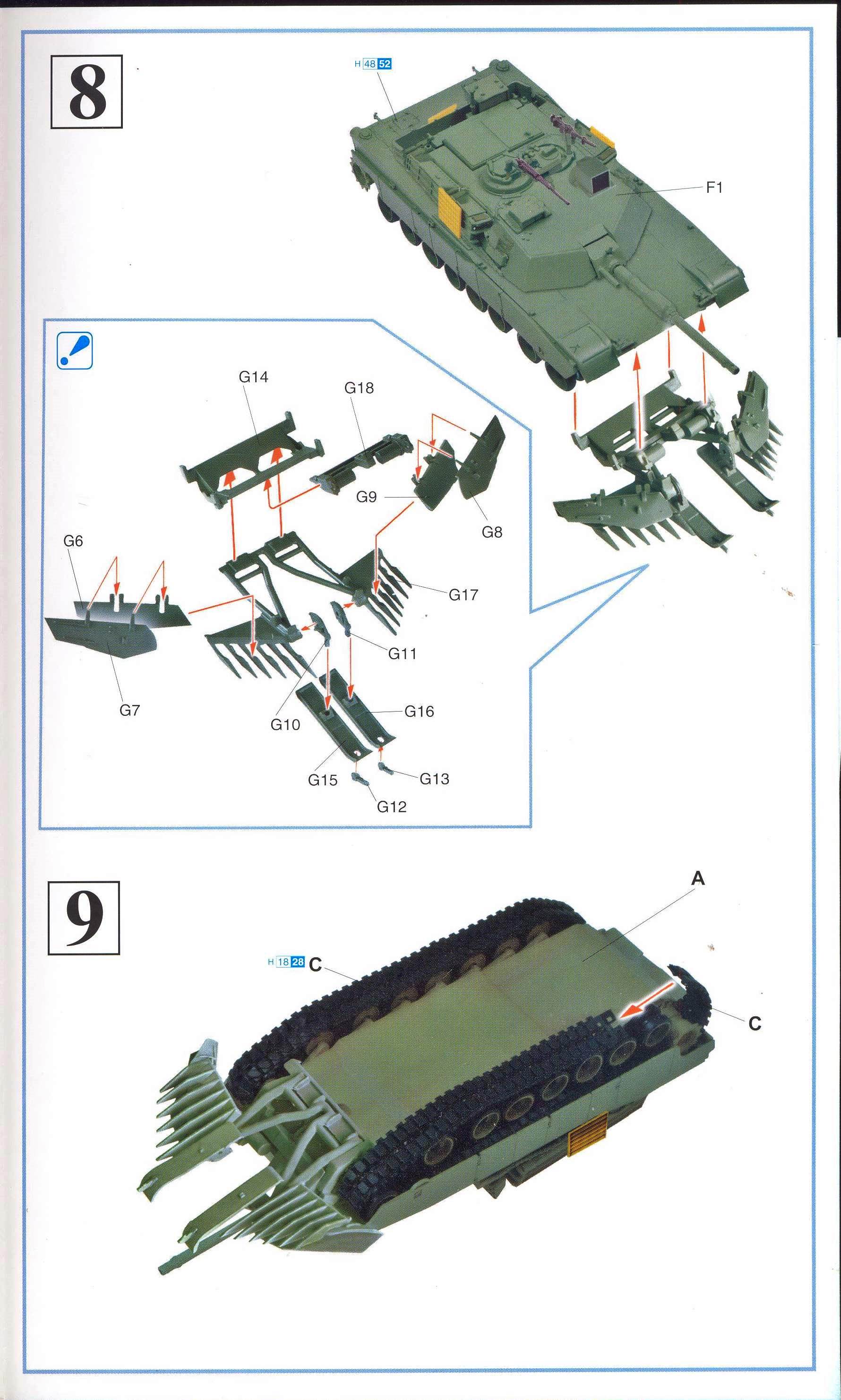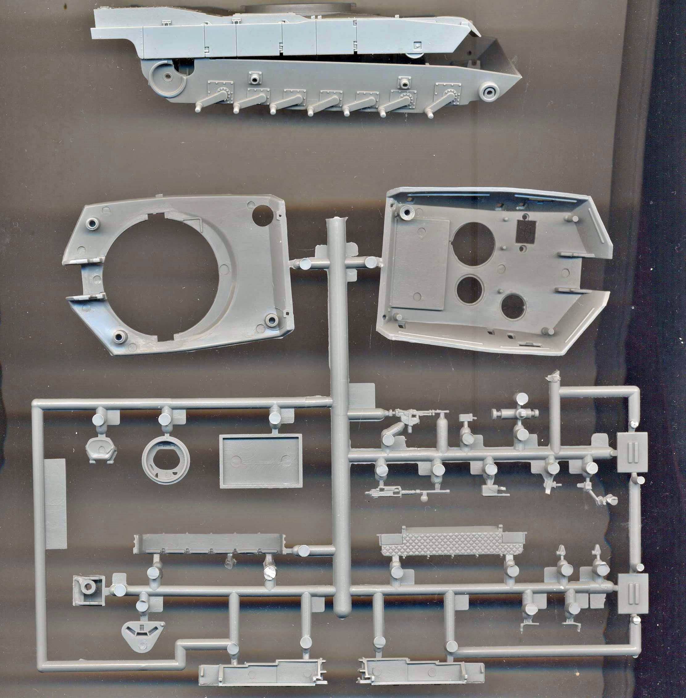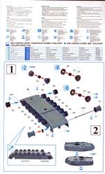I admit that I don't know a lot about this tank, so in order not to say anything stupid, I'll just give a scan of the sprues and instructions and hope that this is of any use to someone. More knowledgeable people have reviewed the two sister kits of this one. I can only assume most of what is said there applies here as well. The main sprues. Rubber tracks. Vinyl (!) bags and personal belongings. Metal parts to hold the hull together and to allow the sprocket and idler to spin. (The kit was originally meant to be motorized.)