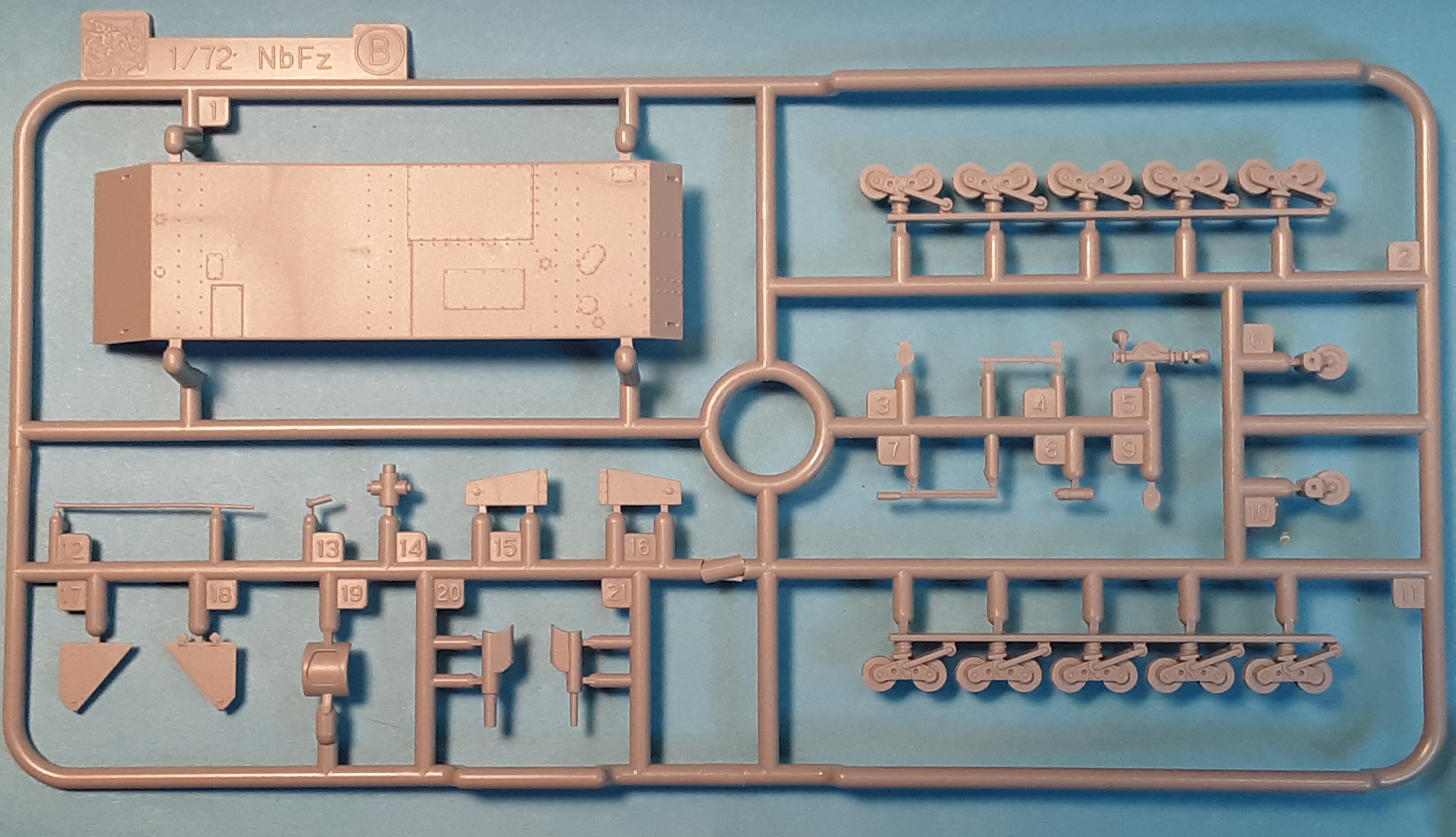 Modelkrak’s 42 or so tank parts and eighteen 3.2 cm-long lengths