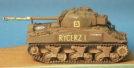 A LITTLE HISTORY FOR THE MODELLER I will not cover much about the history of the Firefly or the M4 Sherman tank here, being covered well in many other books and articles, but I will discuss a little on their service with the Polish Forces. During the Second World War the British supplied both Sherman and Sherman Firefly tanks to the Polish armoured forces serving in Italy and in NW Europe. (It should be obvious that none served with Polish Forces fighting under the Soviets in Eastern Europe.) After conversion from a Sherman Mk I or Mk V to a Sherman Firefly Mk Ic or Vc, they were accepted by the Polish units with the same major modifications as used by UK and Czech Firefly tanks. Field modifications to the tanks at the unit level were also evident. The Polish Firefly Ic RYCERZ I T-270012 is modelled here as it is very well documented in photos and I have available two 1/72-scale models that include the needed decal markings. RYCERZ I is Polish for Knight 1, a tank belonging to the 2nd Squadron, 1st Krechowiecki Lancers of the Polish 2nd Armoured Division that served in Italy. Regarding Sherman terminology, many unofficial terms have been common with the M4 Medium, such as low-bustle turret, high-bustle turret and fancy sprocket. Many of these actually have part numbers such as the D50878 turret. For my reviews I will continue to use the unofficial common names. |