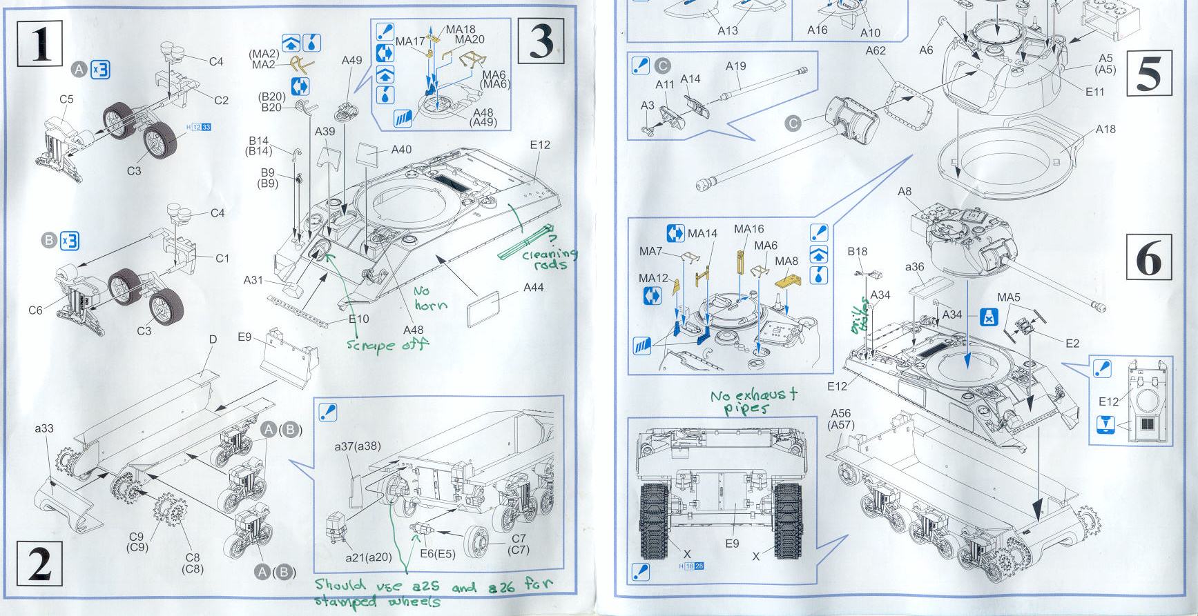 be facing forward but I switched the markings and put the left turret