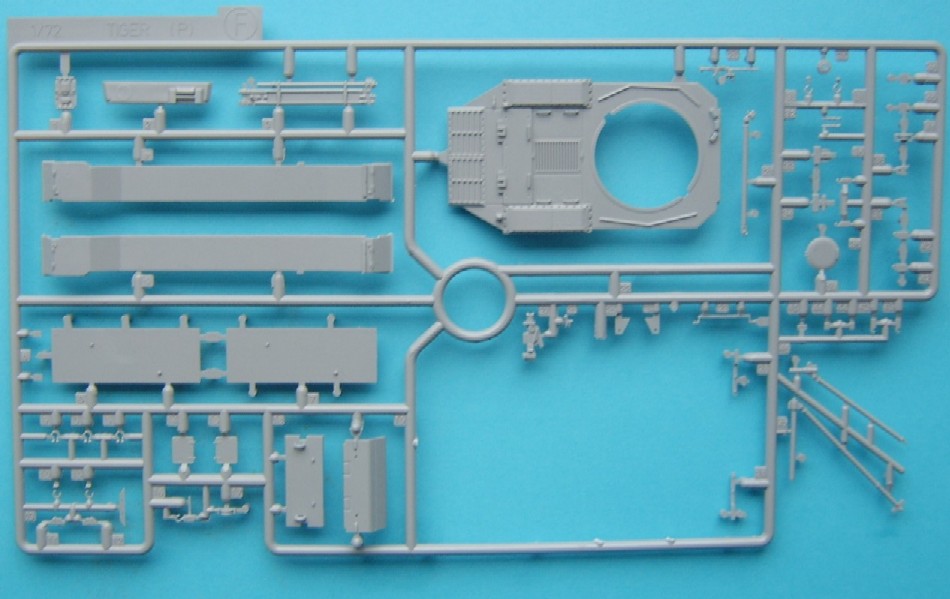 Dragon have finally released the Porsche Tiger I although instead of making the pre-production Tigers, they have chosen a specific vehicle that served on the Eastern front namely Fgst Nr. 150013. Incorrectly labeled and boxed as a Panzerkampfwagen, according to my references it should be a Panzerbefehlswagen. There was some debate about this particular vehicle having zimmerit, which is not depicted in the kit and because of the moulded on tools and tow ropes, would be difficult to replicate without first removing the items. However that said I am now not sure whether the Zimmerit was applied in the field or not and that the vehicle was for a while without zimmerit? the basis of this is just one photo, where it is difficult to see the Zimmerit if it is present or not. It could be that the picture quality just doesn't show the Zimmerit, as according to other photos it was a very faint pattern a can be seen below. Anyway to the kit. The kit shares a few parts with the Elefant Armour Pro kit 7253, the running gear and tracks coming from this kit, the surprise is that it also includes parts from the Bergpanzer Tiger(P) mainly the crane and some hull fittings. The kit also includes the Tiger Turret sprue from that kit, which has the incorrect symmetrical turret plus two mantlets for the main gun an early and late pattern and the tiger stowage bin and other various fittings. The good news is that although the kit has the old Tiger turret [Ed. note: it's not the oldest Tiger turret from Dragon, but it is indeed older than this kit.], it does include a new turret roof on a different sprue which is the correct asymmetrical shape, and although the turret sides are not entirely correct these should be easier to correct than the incorrect roof. This is the incorrect roof, as you can see it is symmetrical. This is the correct roof, as you can see there is a small gap at the front caused by the new shape, which can be easily glued. To the Sprues