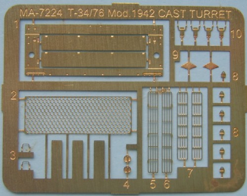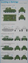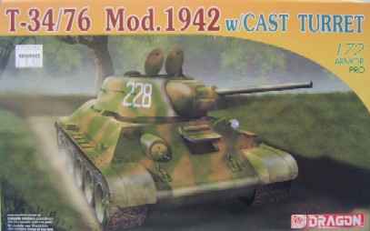 Yet another T-34 release and I am sure that it won't be the last (not counting the SU-85/100 SP guns) this time it is labeled as the cast turret, which is somewhat mis-leading as it is not the cast turret version but a so called formed version or even known as a "pressed" turret or a Stamped turret. Despite it being wrongly labeled it is infact a good representation of the formed turret. The kit breaks down in the now familiar way, with the exception of the wheel choice. The basic vehicle is the same as in most of the other Dragon kits with the exception that the rear access plate is moulded shut. The turret comes on a seperate sprue and includes the hand holds The turret interion is the same as the other T-34 Mod 42/43 hexagonal turret releases and even includes the roof from the German Beute panzer version although regretfully not the cupola to go with it. The wheels selection has been kept to a minimum with just the perforated rubber dished version being in the box although it was usual to see these vehicles with other variations in wheels. for those that have the full T-34 range this shouldn't pose too much of a problem as with careful planning it is possible to get other wheels from the other kits. The tracks are the standard Waffle pattern made out of the "famous" DS plastic. Personally I feel that the tracks are the weak point in these kits, not so much because they are one piece but because they are to my mind slightly too thick. The PE is the standard fret seen in the later T-34 releases and has a good balance of parts that will enhance the kit without going over the top with it. Markings are provided for 5 vehicles, although this time they are missing the obligatory beute version. the decals are thin and in register.