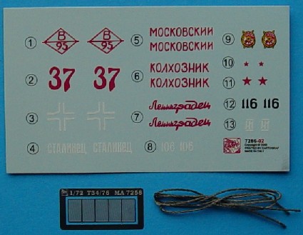 The third release in the Dragon T-34 series. It has been said that the Hull is wrong, I will not go that far as to say it is wrong,Very rare maybe, infact so rare that outside of a set of drawings pictures are very difficult to find, but there are more reasons to this than that simply it did not exist. to try and tell the proportion of something from a picture is very hard. So I will say simply this that the hull is not correct for a common vehicle of this type but who knows the whole story? For tose who would prefer the more common type then the T-34/44 supplies it, but who wants to pay twice for one kit ?? Back to the kit, It uses the same lower hull as the rest of the series, but with a new upper hull, this is also the first one that has the Drivers hatch as a separate piece which allows you to see inside, but no interior detail (with the exception of the turret) is included, having thought about this, you can always use the drivers station out of the dreadful Military Wheels T-34 Hulls. You have to commend Dragon for one thing, they certainly leave the way open for aftermarket products, if only there were some ! The hull is nicely detailed with the correct round access hatch in the rear plate. Also included are two types of Armoured covers for the exhaust, although only the straight edged ones are suitable for this tank (But you never know!) The rear fan cover is as usual given twice, one fully moulded and one open to add the PE screen to, A word of warning, Unless Dragon have changed it then only the moulded one can be used as the PE screen is too small to fit the open cover. Still the moulded one is nicely detailed and for those that want the moulded mesh can be cut away and replaced just like every other T-34 kit. The Turret is of the Hard edged variety and correctly shaped and proportioned, in fact it matches exactly the drawings I have, the only problem with the turret are the two vision slits in either side, the are a little too pronounced and could do with being smaller, although I am not sure how you would acheive this. The other odd thing about the turret, is the inclusion of two roofs, the one on the main sprue, is a type I have never seen before with the periscope on the right, mostly from all the photos I have seen the either have it on the left or on both sides, Maybe this is a mistake that Dragon corrected before release, although the instructions do give the option of using both. As with the other two releases there is a basic breech for the main gin included, although this does fill a space nicely it is not a complete turret and it would need some extra work if modeled with the hatches open, unless they were filled with crew figures. Also included in the kit are two nicely detailed unditching beams and the early type external fuel tanks, along with some separate tools and two rolled canvasses. Now we come to the kits main downfall as a static model, although the wheels are nicely moulded and these are the best all steel wheel I have seen in plastic, their one downfall is the fact that all the holes are moulded shut, although I like the idea of one piece wheels (only because I hate doing them) I would rather have two piece wheels with open holes than one piece and have to drill them all out. However I don't understand as surely it must be possible to have a one piece wheel and open holes !! anyway back to drilling ! The Tracks are of the waffle type, moulded in the DS styrene, despite what many people think of this, I like it, it takes paint very well and glues with normal styrene cement and there is enough of it to produce the slack needed without being tight around the drive and idler wheels. For those that say it is not stiff enough and bends around the wheels, there is a way round this, with some careful glueing and deft cuts and it is still quicker than link and length. Don't get me wrong, I like link and length when it is done right, however it is very easy to get it wrong and a lot of the companies seem to cut it a bit fine on the length of the track which gives no room for manouver and the tracks end up too tight. The decal sheet includes markings for 6 vehicles, also included is the metal string for the tow ropes and the too small PE radiator screen
