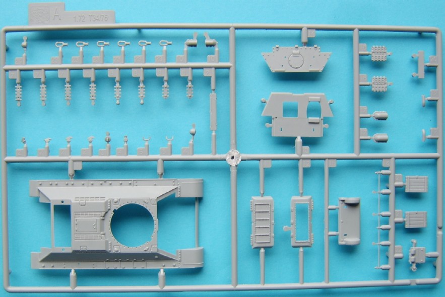 Yet another T-34 from Dragon although funnily not a lot has been said about this one on various forums, probably because nobody could find anything to moan at. The kit uses the same hull and turret as the 42 version. Following the comments about the 42 hull dragon have corrected the hull in this model to a more common version. The kit is basically the Model 42 with added parts for German use, in fact 4 different vehicles can be built, shame that they don't supply 4 hulls to do it with, in fact only 4 options are given in the instructions but other versions can be built from the parts as will be shown The kit uses the lower hull supplied in all the T-34 kits. The kit is essentially the T34 model 42 with hexagonal turret with the exception that the hull has been modified to a more common version. The kit is broken down exactly as in the T-34 model 42 As with the 42 version two turret roofs are supplied, I am still perplexed by the rood on sprue D I have still not found and 42 version with the sights mounted on the RHS Now we come to the best bit, Sprue K contains all the part required for the German versions, in fact it also contains parts to make a Model 41 Beute panzer Included on the sprue are the bins used on the 42/43 model including the jerrycan frame the side bin for the 41 version, a new hatch for the 41 model as well as a PzIII cupola with the option of open or closed hatches. Also included are the notek lights Jack and frame with tools. Contary to what has been said in various reviews in Magazines 4 different road wheel types are provided mainly the all steel and dished, also included are 4 early pattern webbed wheel and 2 late pattern webbed wheels. The wheels althoguh beautifully moulded have one big shortfall, the hole are all closed making for a lot of up. I still ca not understand why Dragon can not do open holes, I can see no logical reason even using slide moulds as to why they are not open?? oh well back to drilling. The tracks are the same and of the correct pattern The usual metal tow rope the PE is a fairly comprehensive set providing the side skirts and one of the stowage boxes in brass, also included is a new fan /radiator cover this time with bolt detail, the louvres for under this are also provided and can be positioned. The PE set also includes all the engine deck intakes, handles for the stowage boxes, details for aroung the tow hooks and a new Notek mounting plate, this set is better than some of the aftermarket sets you can buy. If like me you have the Armo barrels lying round, with a slight modification to the turret mounting they fit perfectly and enhance an already good kit. Markings are provided for 4 vehicles in german service each vehicle is shown in the instructions as a different option and a small table is provided to show what fits on which version. This must be the most complete T-34 kit in this scale, in fact I know it is, the options provided supplies lots of parts for the spares box. Nice to see that Dragon have changed the hull for the more common type, although people will still moan about the DS tracks (which can always be replaced with the UM ones which I find the best Plastic tracks) and although these kit (here in the UK at least) are slightly more expensive than others, add the cost of buying a kit and a set of PE together and they work out very cost effective.