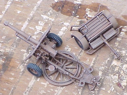 Postscript: After I first posted this review, I received a mail from Mark Thomas with some excellent information. These guns were painted a sand color for use in the Mediterranean, while in Italy and Europe it was painted overall green, or with a brown/khaki-brown camouflage. The perforated muzzle brake which I used was seen on late-production guns ('44 onwards), which means that I screwed up on mine (should be green only). Apparently these guns did not sport any markings, and for those of you planning on doing a jungle diorama, the Aussies liked to shorten the gun barrel and axles, to assist in jungle movement. Thanks for the great info, Mark!