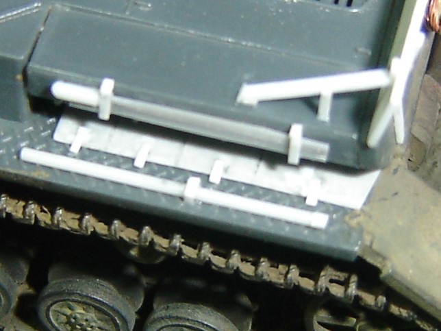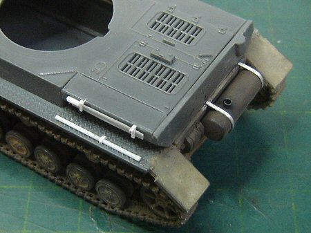 of HSP, springs are also made for the front mudguards. There is a large gap between the rear-mudguards and the rear hull-plate that is filled with a piece of plastic strip as shown in the picture below. |