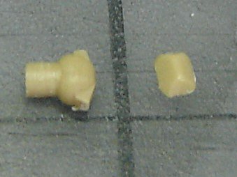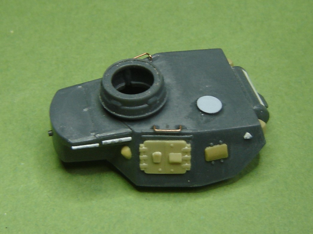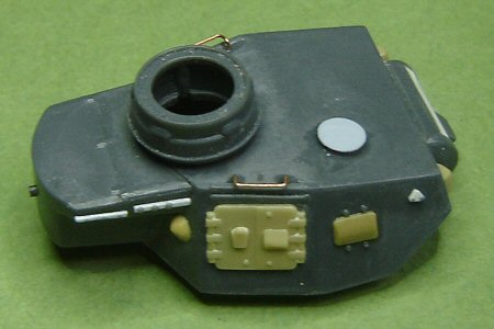 be correctly shaped in this photo). Weld lines from HSP (Heated Stretched sPrue) are faintly visible as is the very small hole next to the left vision port. Viewed from the front, the gun mantlet is slightly offset to the left. |