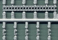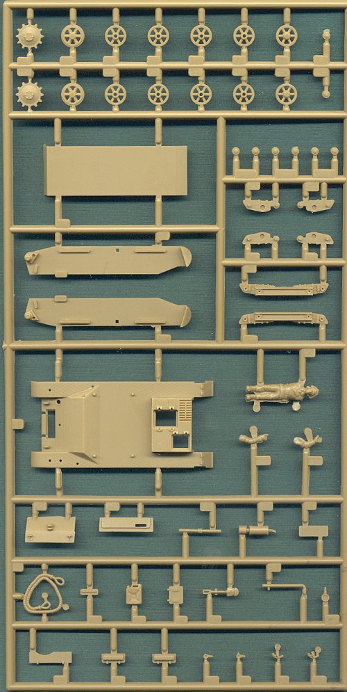 As is normal with the ESCI models, this kit had its tracks changed from the early, belt-type vinyl tracks to hard plastic link ad length tracks in the ESCI/Ertl release. The early tracks aren't as horrible as most vinyl tracks, though it will be difficult to replicate track sag. The hard plastic tracks are nicely done, though a little thick, which makes the vehicles sit a little tall when complete.