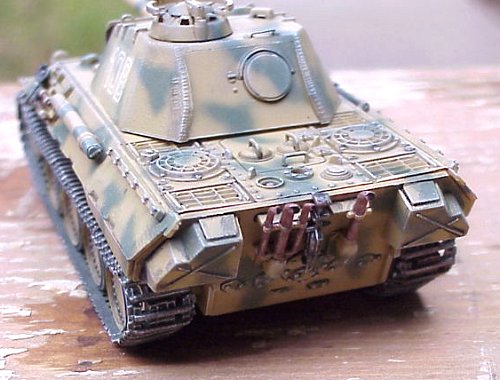 The only alteration I made to my kit was replacing the hatch handles with brass wire. (I noticed after taking new photos of this kit, about two years after I first posted this review, that I had inadvertantly switched the two hull hatches - ouch!). It was painted with Polly Scale Panzer Yellow and Panzer Olive Green. The kit decals, as always, were printed out of register, so I replaced them with some Microscale decals. After using some setting solution, and finishing off with clear flat, the kit was complete. I really cannot say which kit I prefer, the ESCI or Revell, as either one will build into a very fine replica of the Panther A.