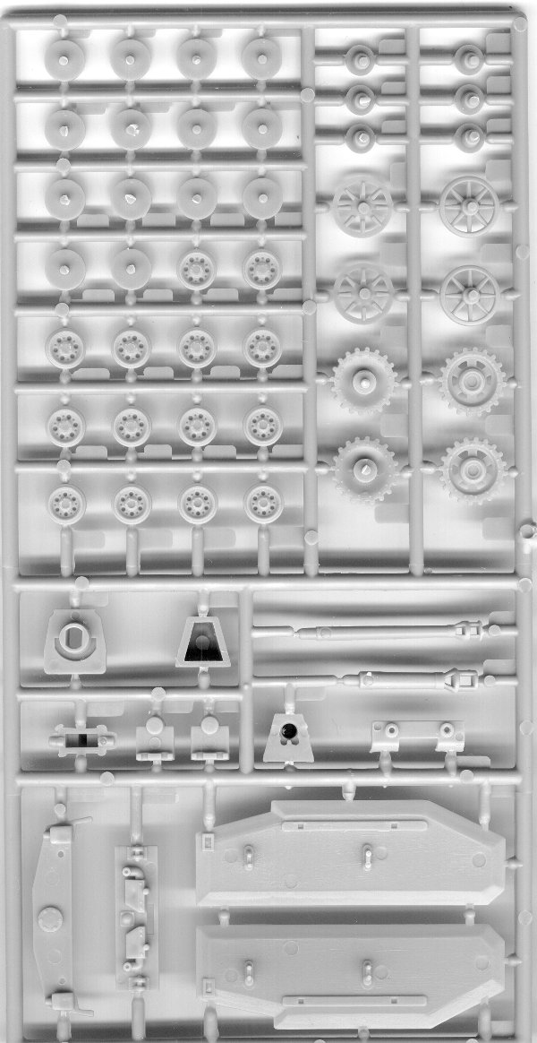 The lower hull is the same as the ESCI Pzkw. III, that means only the outer wheels are detailed (but they are superb), the sprocket is inaccurate and the return rollers have no grove for the track-teeth. The suspension parts are a bit soft and there are some ejector pin marks on the hull sides. But if you add skirts, most of this will be no longer visible.