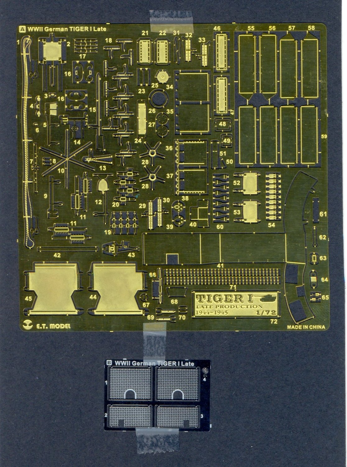 ? In all, a sheet with potential, including parts that are within reach of every modeler with basic PE-experience and some parts to raise the bar for others. Note that this sheet has little in common with set 72-006 for the early Tiger.