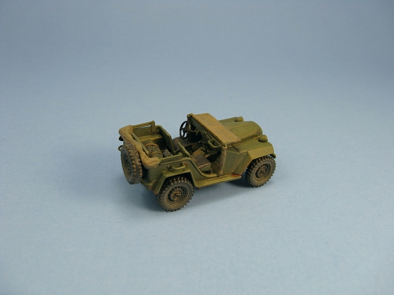 For step three I followed the instructions except I left the wheels and muffler/exhaust pipe off until later following the painting. They are all easy to add afterwards. The headlights are a bit of a problem. They are molded as hollow shells, but no clear lenses are included with the kit. My solution was to fill the shells with a thin slice of plastic rod, paint them silver and then add a drop of 5 minute epoxy on top to make the lense. This worked reasonably well but I will definitely have to work on perfecting this method for creating headlight lenses. I did this following the painting and just before the final flat coat I covered them with a small piece of sticky tack to protect them from the spray. The biggest let down in the kit comes from two areas. The first is the windshield. There is no clear plastic supplied so the modeller is forced to make their own insert and the instructions provide no dimensions so it will require some trail fitting to get the correct size. Another problem lies with the fact that there is no ledge around the inside of the whindshield frame to ease the placement of the windows. Not wanting to spend a lot of time on this I chose the lazy man's route and put a cover over the windshield fashioned from Tamiya 2 part epoxy. Detailing was kept to a minimum. I drilled a hole in the small tab on the top of the front bumper and in the end of the exhaust pipe. I also drilled holes in the trailer hitch (part 17) and added a hitch pin from some piano wire bent to shape. There is no stowage included in the kit. To make the interior less sparse I added a tarp (made from 2 part Tamiya epoxy putty with straps made from thin lead foil) and a German jerry can. The last item was a scratch built shovel added to the left raar quarter panel. What's really missing is some weapons, so once I can get my hands on some Soviet rifles or MGs I'll add them to the interior just behind the driver's seat. All in all a very nice kit. Not quite up to the detail and fit standards of Dragon or Revell but close enough that this makes a fairly relaxing and quick build. Review sample purchased by the author. |