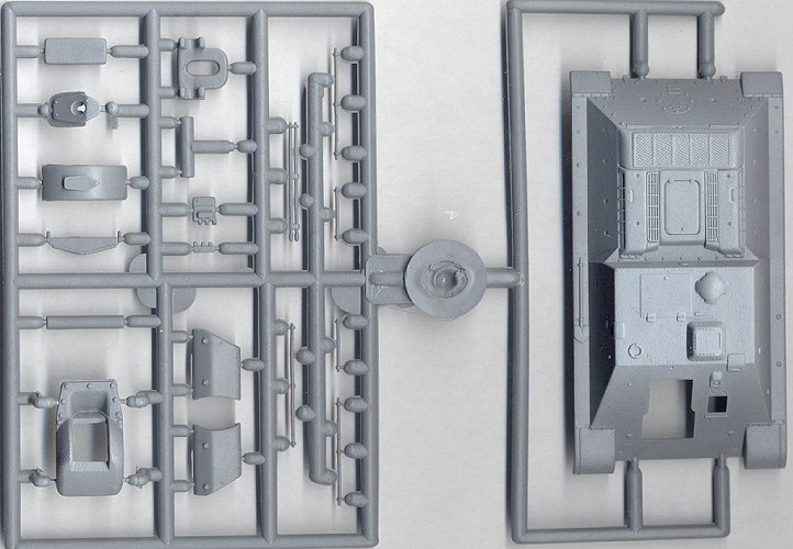 Because these kits share several sprues of parts, there are often many unused pieces in each kit. The first scan is of the SU-122 hull and associated parts: