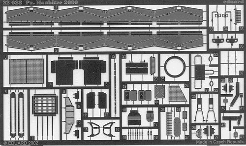 One of their newer sets, done in etched steel. This is the only set available for the PzH. 2000, and it provides many useful parts. The only parts I don't understand are the new side skirts. Maybe just because they are thinner than the kit parts? Regardless, this set will go a long way in improving an already outstanding kit.
