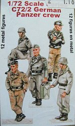 12 metal figures: 1x with jerrycan, 6x crew/commanders standing, 2x Crew/commanders seated, 2x with torso and legs in kit form.
