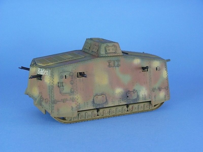crossbones markings [Mar. 21, 1918] For markings I went a different route than suggested in the instructions. The Hundleby & Strasheim A7V book contains a couple of pictures of A7V ‘Baden I’ just after the battle of Villers-Bretonneux and Cachy in April , 1918. In one of the photographs “Baden I” displays no German Iron Cross markings of any sort, which I felt would make for something out of the ordinary, and I just had to finish the kit with these markings.