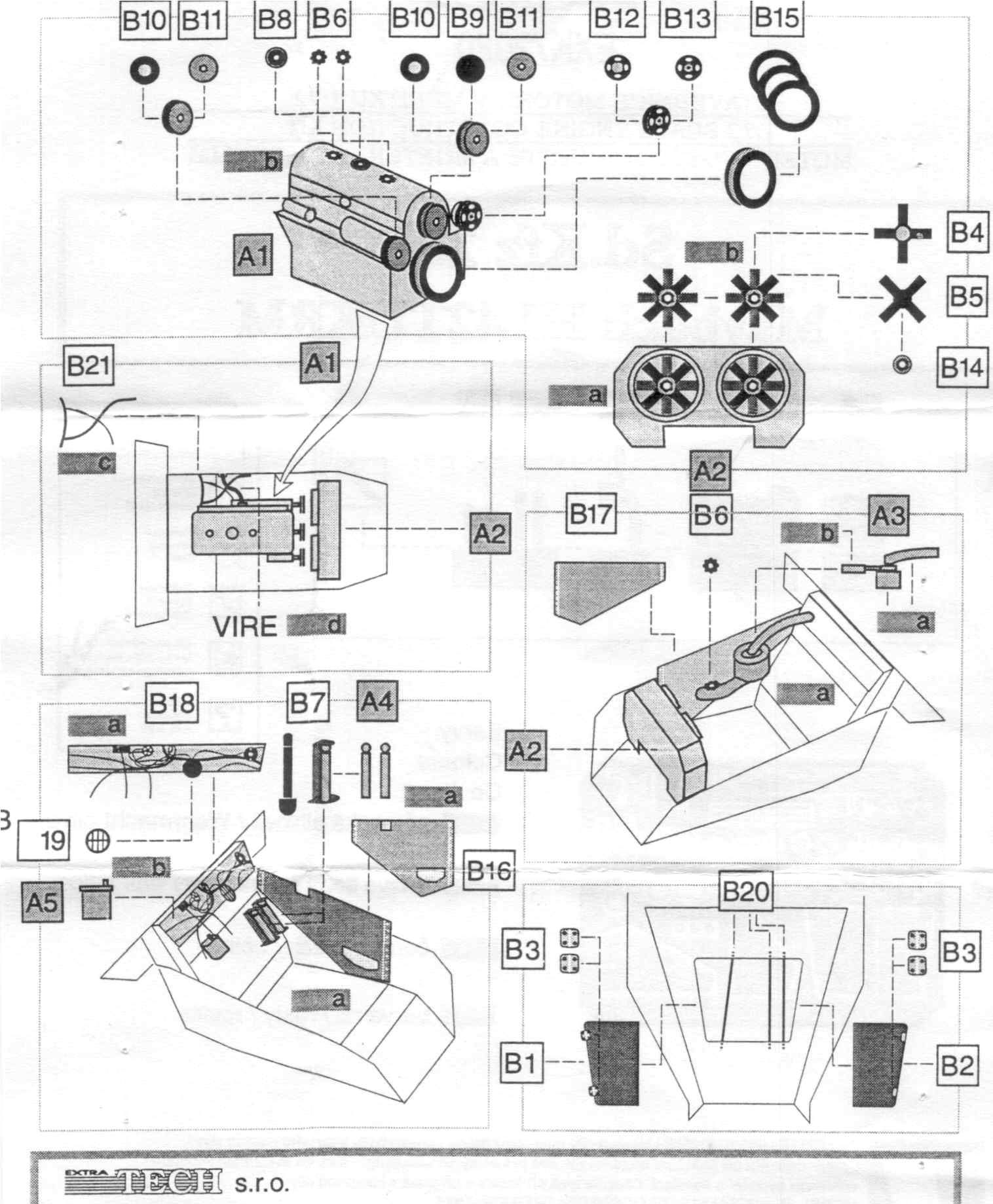 thin sheet styrene. Part B21 is actual wiring for the engine area.