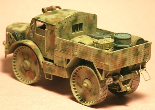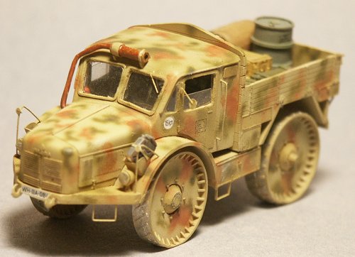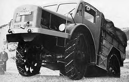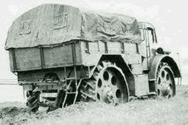 This German World War 2 era vehicle started life in response to the need for an off-road tractor and supply vehicle built for the mud and poor roads of the Eastern (Ost) Front. Radschlepper Ost (RSO for short) translates to "wheeled tractor East" The vehicle was designed by the famous Dr. Ferdinand Porsche of Volkswagen and of the Elefant panzerjäger fame, and is not one of Dr. Porsches best accomplishments. The vehicle was initially rejected though Hitler is reported to have ordered 200 built anyway. Production ceased at 100 though and I understand few or none served on the Ost front (the front it was designed for), several in the 1944 Ardennes Offensive. I surmise that the all-steel wheels would have made for a very uncomfortable ride. One source I read stated it performed poorly on icy roads.