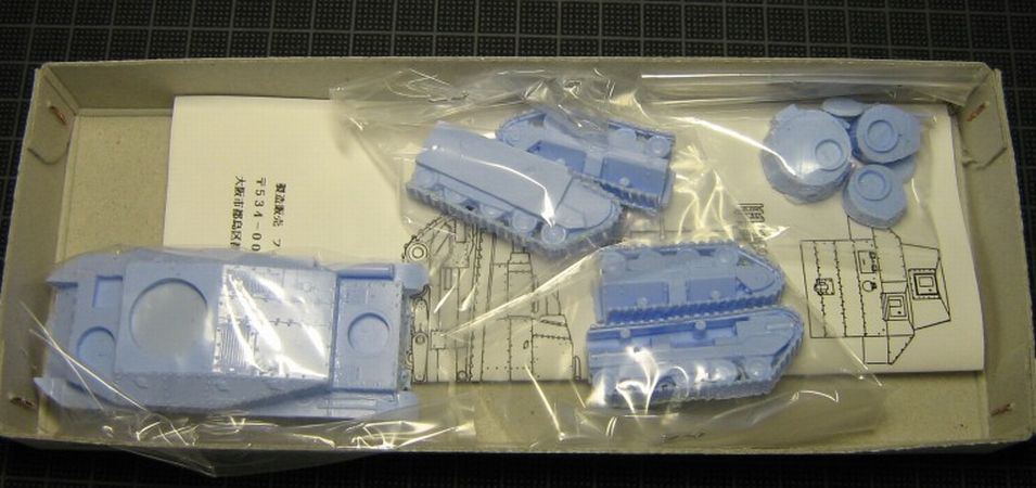 The kit comes in a carton box measuring 21.5cm x 8.5cm x 3cm. Parts are separate packed in separate plastic bags and contains only 16 parts cast in light blue resin.