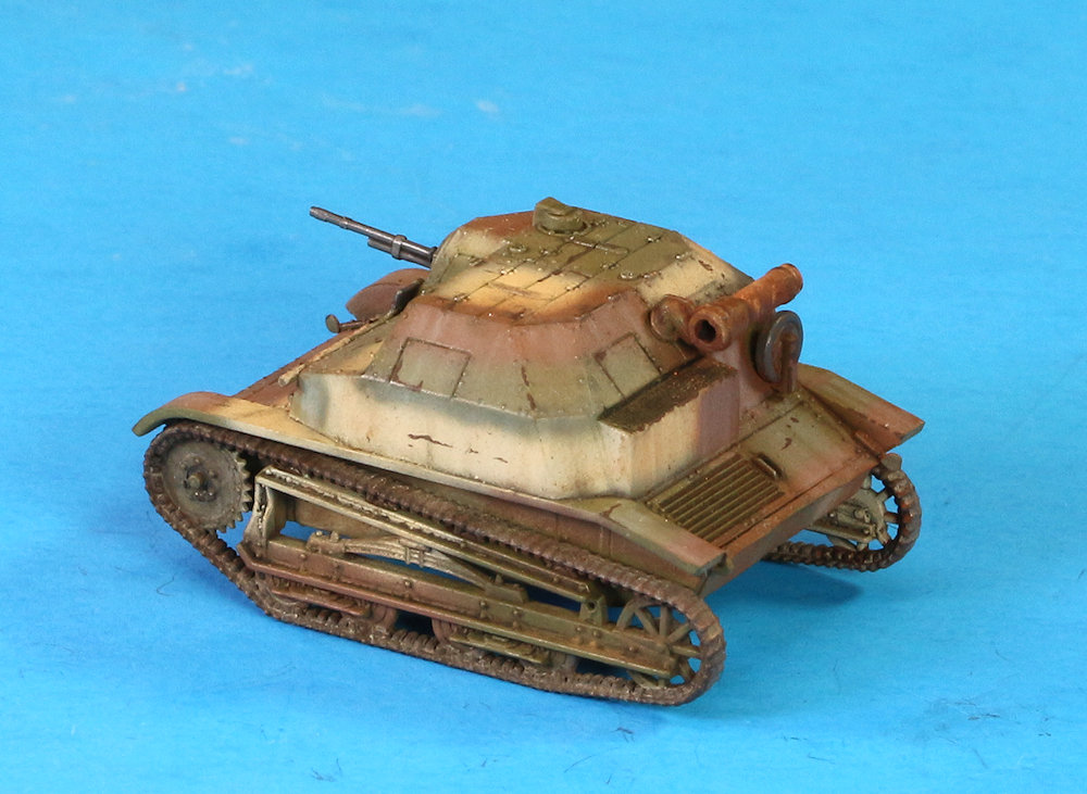 smallest tank model I have ever built. Well, it's tied, I guess, because I previously built this same tank from Al.By. Marc Mercier previously reviewed the First to Fight TKS w/20mm Cannon kit, and included scans of the kit parts in his review. This machinegun version includes the same sprue of parts, with an additional smaller sprue that contains the machinegun parts. Michal Derela also reviewed the 20mm Cannon kit, and within that article, he compared this First to Fight TKS with several others that were marketed at that time. I agree with Michal's assessment of the other kits. Several other companies market, or have marketed at one time, several variants of the TK tankettes (TKS, TK-3, TKW, etc.). My further opinions of some of the other kits are: the Al.By is OOP, and lacked hull rivets and had poor tracks; the ModellTrans kit is pretty decent, but again with poor tracks; NRC isn't too bad, though the rivets may be a little over-done, and the tracks are again, poor. The ESO kit looks really nice in the box and has link and length plastic tracks that would look absolutely gorgeous if one is able to handle parts that small, which I have heard from some people, is very difficult. But it apparently has some shape errors, and it is OOP regardless. The less said about the RPM kits, the better. And finally, PART makes (made?) several versions of this tankette, which come with photoetched tracks. Again, the finished tacks look amazing (based on the cover photo on the box), but they come in two layers of brass that need to be glued together after bending to shape, which I think is going to be very, very difficult. (I think it's time I write a comparison article between all of these options...) Consequently, if one is looking to build a TKS, I would recommend this First to Fight kit whole-heartedly. Assembly was a breeze. I drilled open the ends of the muffler, but I should have looked more closely at my references, as I opened up the left end of it too much. Crap. The pioneer tools are nicely shaped, but instead of trying to sand off the sprue nubs from the crowbar, I simply cut one to size and shape from styrene rod of the appropriate diameter as a replacement. I also added some attachment brackets for the tools from some metal foil. A small improvement that I did NOT make, though I think it would have improved the look of the final model, would be to replace the hatch handles with bent wire. According to the dimensions included in Militaria i Fakty #31 Czolg Rozpoznawczy TK-S, the length and width of the kit are perfect for 1/72nd scale, though it's about 2mm too tall. Not that anyone would notice. As with all of my recent builds, the model was painted with MIG's ATOM paints, and weathered with various products from AMMO, AK and Vallejo. |