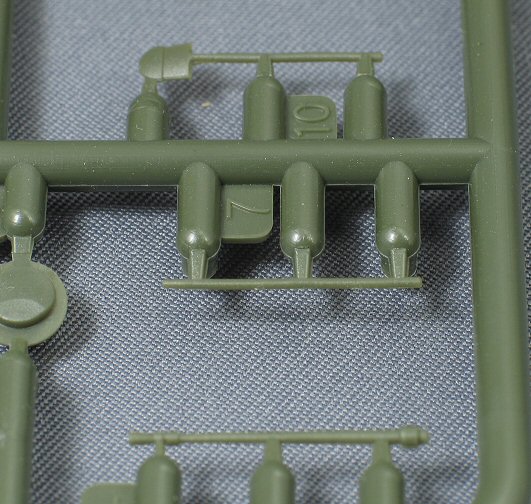 The plastic seems to be softer and more flexible than usual, which makes it more resistant to abrasive action. In most cases, this is not a problem. However, the choice of plastic made it nearly impossible to clean up those extreme fine and long parts (like the barrel, the shovel and the crowbar) which are very fragile. I don't consider myself being an inexperienced modeller, yet I was unable to remove completely those three big attachments points on them without breaking the shovel and the crowbar, even after backing them up against a steal ruler for extra strength and protection! In the end, I had to replace the broken parts with some styrene rod; the detailed barrel luckily survived the cleaning procedure. |