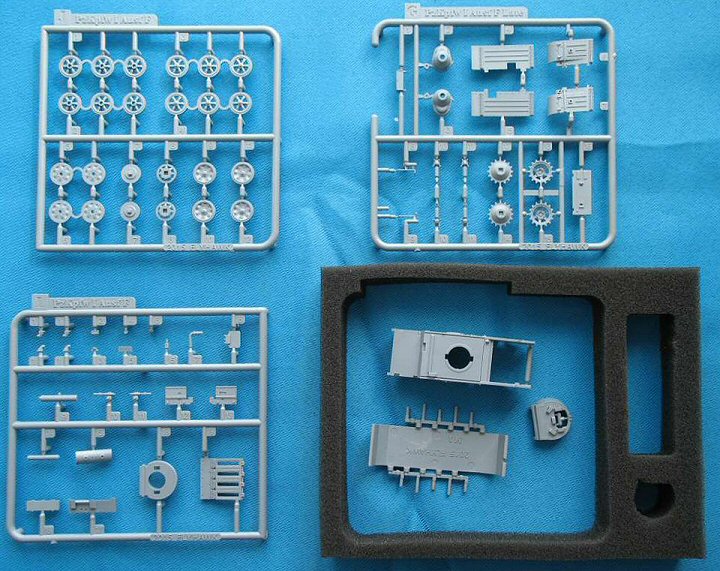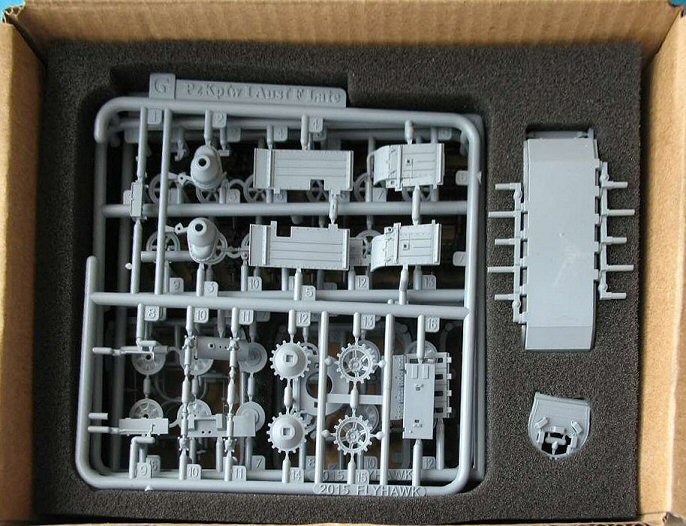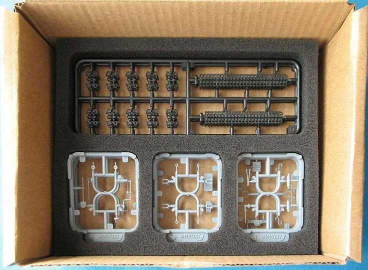 box with the individual sprues protected by foam cut-outs. |
