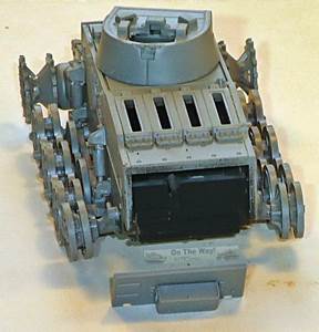As it will be difficult to paint the area behind the roadwheels once the tracks are in place, I painted this area first after having decided to go for the dark gray painting option. As mentioned earlier, the roadwheels are given in the "neo-classical way", being connected by arcs. Up till now, all manufacturers that have chosen this approach have presented their roadwheels in exactly the same position, which doesn't look entirely realistic. I therefore decided to sever them and install them individually, taking care that pairs of roadwheel halves are aligned. The fit of the wheels on the axles is so tight that it doesn't pose a problem to keep them in line while adding realism. The tracks have a level of detail that I haven't seen in any other kit. Track faces are very crisp, track teeth are hollow (!) and individual tracks pins are represented. The individual links actually click into these track pins. The fit of these is tight, so tight that working track links are starting to appear on the horizon of possibilities. Flash is nowhere to be found and as the tracks are given in dark gray (the rest of the kit is light gray) they will not require much painting, perhaps just some dry brushing and weathering. |