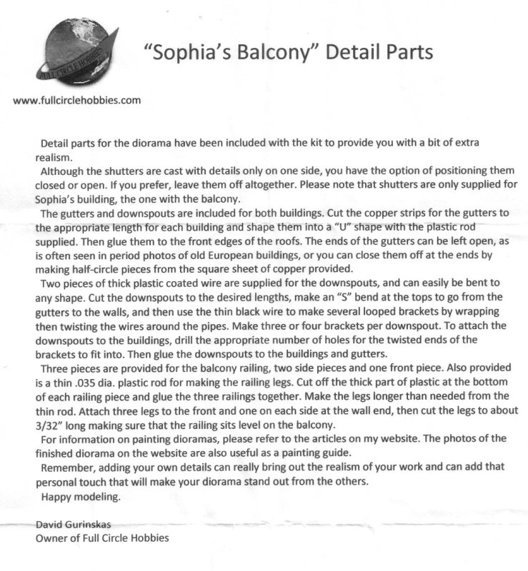 only on the railing parts for the balcony. According to the manufacturer, "The inspiration for this diorama came from actual buildings seen throughout Southern France