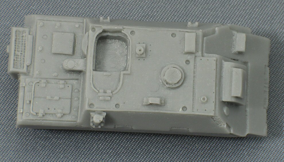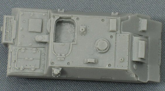 | The hull is moulded as one big part with a lot of detailing. The only hatch on the roof can be positioned open en there is room for a half figure. | |||