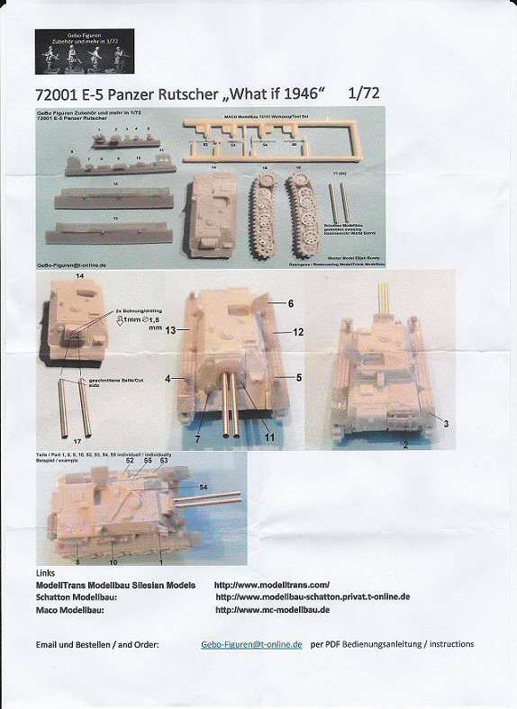 | While the "what-if 1946" and "Paper Panzers" mostly turn out bigger than the real ones used during the war, this E-5 “Rutscher“ completely goes the other way. It was effectively planned as a very light and small (thereby saving on raw materials) and easy to produce vehicle, intended to give the troops some much needed firepower. Combat weight was to remain below 5 tons. | |||