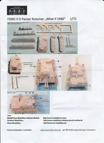 However, when the war ended, it only existed on the drawing board, but a full-size wooden mock-up had been build. If ever produced, that 3.55m long mini tank killer, having only a two man crew, would have packed a considerable punch with two 80mm Rheinmetall Panzerabwehr-Wurfkanone PAW-600 smooth-bore guns. These, for that time, very advanced recoilless guns were effectively test fired during the war and apparently had an armour penetration, out to its full effective anti-tank range of 750 meters, comparable to the 75mm PaK40, but at less than half the weight of that PaK40. Some more information on this vehicle can be found on this page : http://strangevehicles.greyfalcon.us/rutscher.htm Roughly