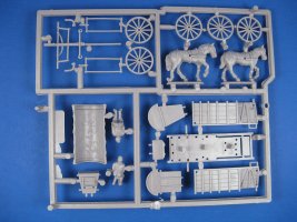 Two figures are included. The driver looks not too bad. The soldier riding shotgun is terrible. There are two horses for each wagon. I'm not a horse person by any means but they look quite nice
